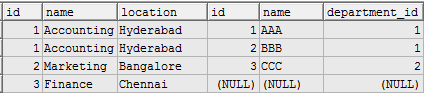 In the place of Department details for the employees 4,5( who doesn’t have department associated ) gives NULL values: